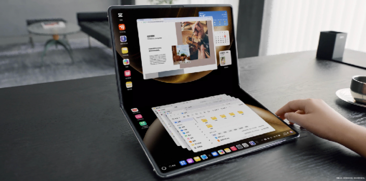 依托折叠形态,华为MateBook Fold 非凡大师打破了传统电脑一成不变的工作形态,带来丰富的折叠多形态创新体验。在横屏展开态时,18英寸大屏搭配一体化支架与华为星跃随行键盘,化身便携一体机。在商务会议中,领导者可展开屏幕展示复杂报表,屏幕高亮与广色域确保细节清晰。摄影师在户外可利用大屏修图,捕捉光影。而在折叠态时,上下双屏独立且可协作的设计,为多任务并行提供更灵活的管理方式。用户可以在上屏查看会议内容,下屏记录笔记;上屏浏览市场数据,下屏进行分析操作。