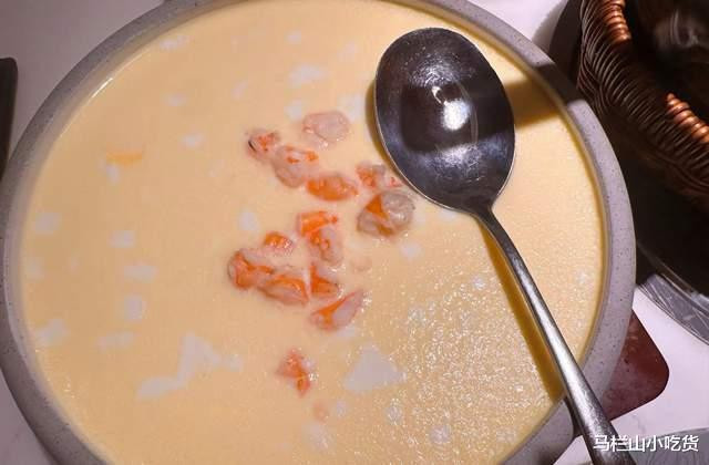 虾仁蒸水蛋:新鲜的海虾仁和鸡蛋一起蒸,鸡蛋吃起来像布丁一样的口感,滑嫩细腻,难怪孩子和老人超爱这道菜。