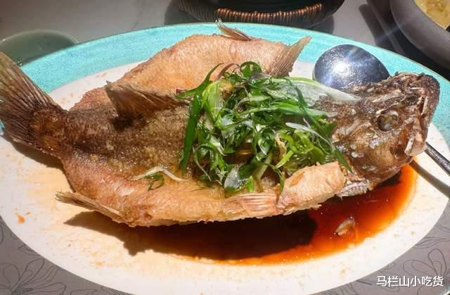 油浸鲈鱼:用的海鲈鱼,炸制定型后,外表油亮锁住鲜嫩,鱼肉滑嫩无腥味,简单调味凸显本鲜。