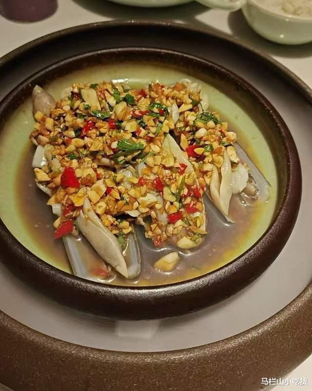 蒜蓉蛏子王:新鲜的蛏子,个大,肉质肥美,直接白灼后,铺满蒜蓉辣酱,酱汁醇厚渗透肌理,豉香扑鼻脆嫩爽口,每一口都是浓郁粤式风味。