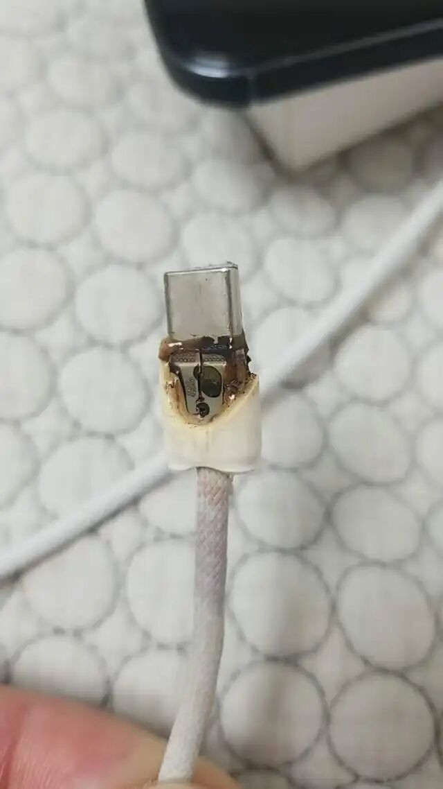 事故的焦点集中在起火原因的认定上,左先生拍摄的照片显示,手机本体大部分无烧焦痕迹,但充电口处橡胶材质已被烧化。11月18日,记者联系到身边几位苹果使用者,其均表示:苹果充电线有时会遇到轻微漏电的情况,但从未遇到过自燃。另有使用者表示,苹果原装充电线的充电端口处,会刻有电镀铭文,如果没有铭文,或许就不是苹果的原装线。