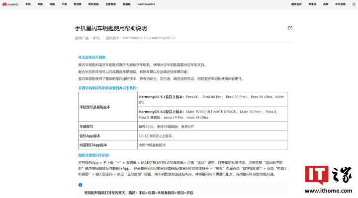 ▲图源:华为官网|开通星闪车钥匙